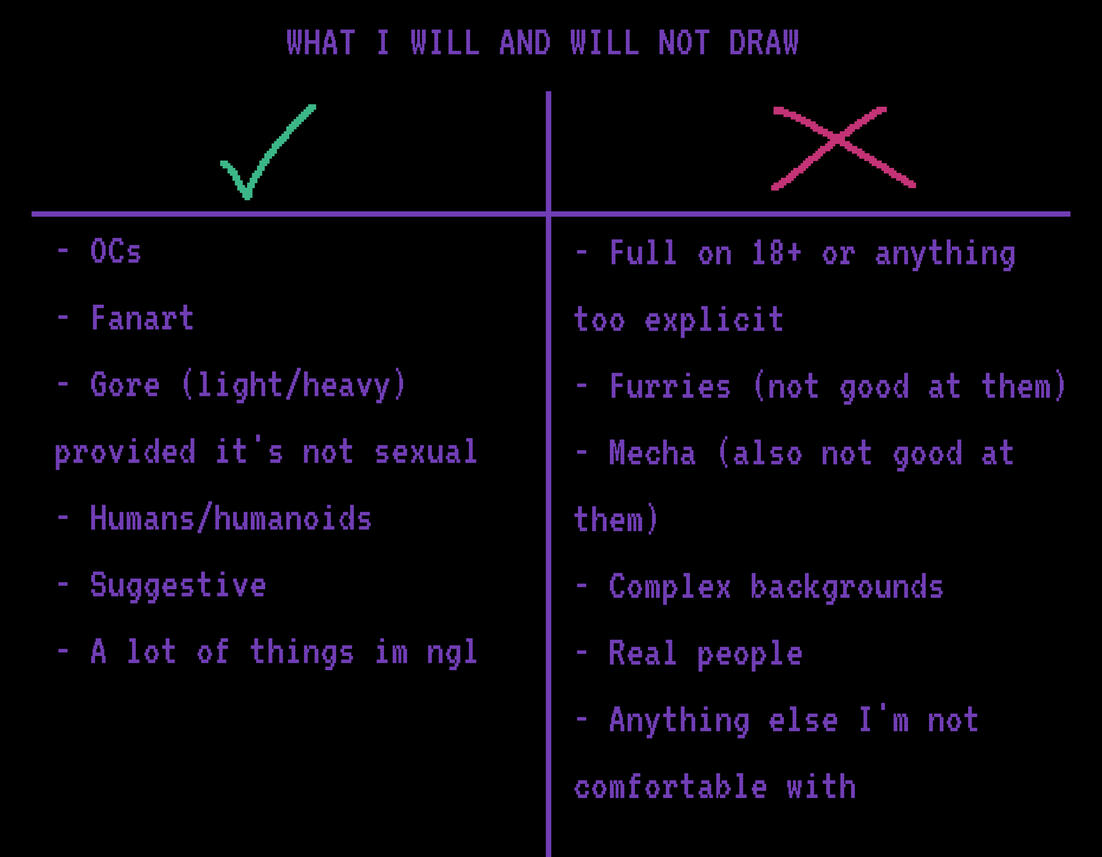 You may not trace or claim my art as your own. If you repost it, please ensure to tag either my X or Instagram handle.